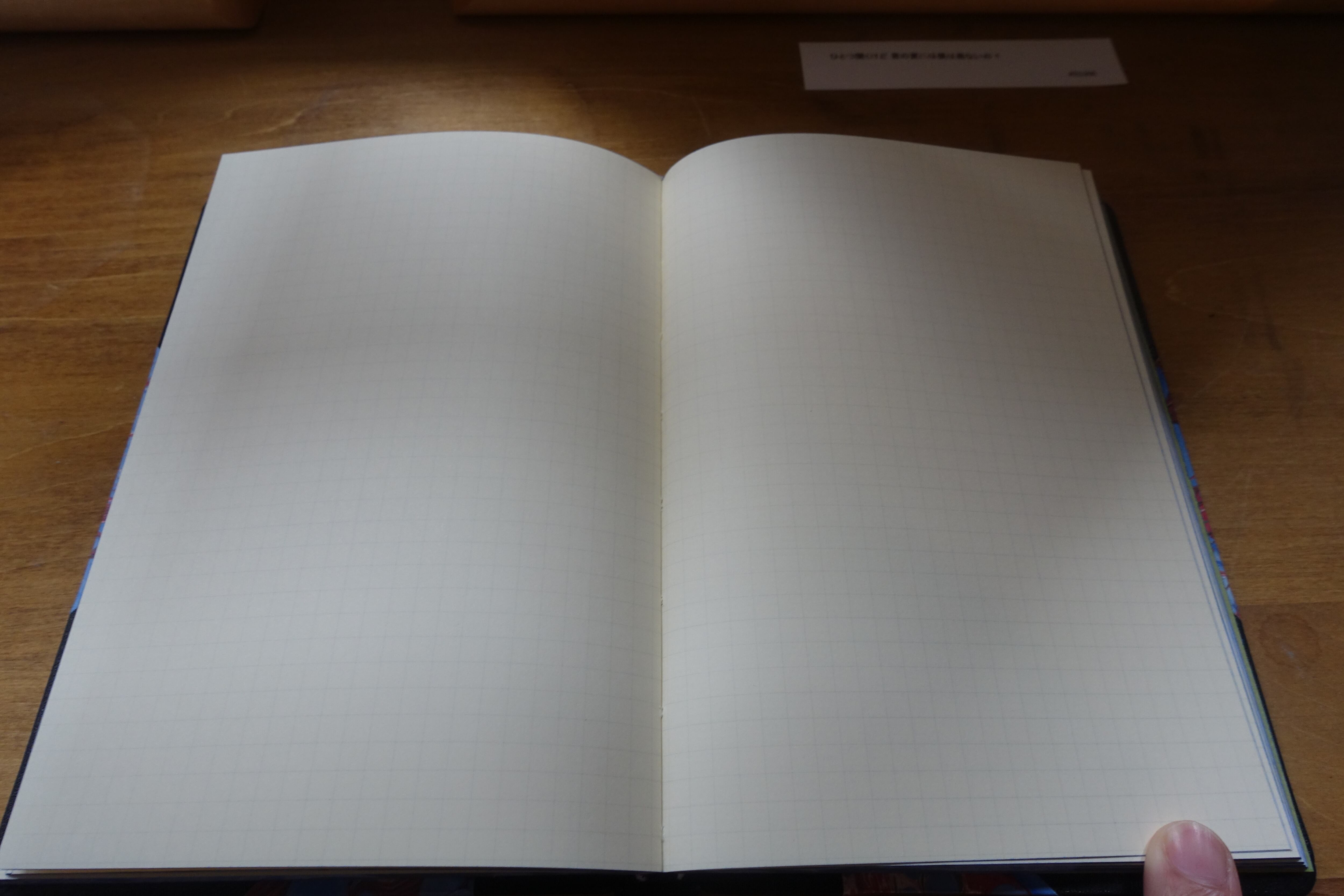 本は全て、手製で制作しております。綴じは糸綴じで、本の開きは非常に良いです。中の紙は方眼紙で、少し黄色味がかっております。装幀のスタイルは、背中と表紙の角に革を用いた、ハーフバインディングと呼ばれるものです。
